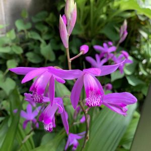 シラン(紫蘭)2種です 左は【クチベニシラン】 お迎え3年目 元々小さい苗だったので これでも株が成長してるんだと思います 💄口紅付けたお洒落さん💞 右は葉っぱに白い縁取りが入った紫蘭で 昨年叔母が抜き苗を岡山から🚄持ってきてくれました 元々は母方の祖母が大事に育てていたものだそうで 子株ならぬ孫株ですね みんなの記憶にあるだけでも半世紀前に倉敷の家の庭にあったらしいです 🫢凄いですよねぇ〜植物って🪴