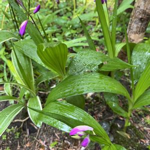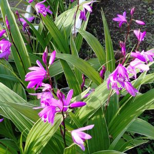 咲くと存在感がある、紫蘭。 陽当たりが良くないので 葉が大きくなる。