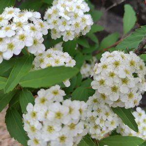 ①名前なんでしたっけ?コデマリ? ②ドウダンツツジ(写真をとり忘れてたら花が終わってしまった😭) ③ブルーベリー ④ギョリュウバイ(赤花だけが生き残ってます) ⑤しらん(紫蘭)かな?