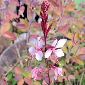 ガウラ🌸💮🌸 もうそろそろ終わりですね🤗 今年も沢山咲いてくれました💓 バックに見えるのは、紅葉した段菊の葉っぱです🍁🍁