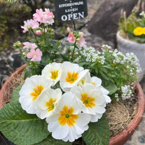 久しぶりに寄せ植えしました☺️ 玄関にお花があるとやっぱり気持ちが上がります😊 ネメシア☘️ プリムラジュリアン🌱 アリッサム🪴