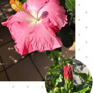 おはようございます☀ 朝から暑いです💦 梅雨に入る前の晴れ間は嬉しいですけどね☺️ 🌺ハイビスカス🌺 蕾が赤いので驚きました👀! 開いたらお迎えした時の色でピンクでした😅