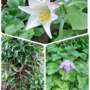 ユリ(種類不明)*アゲラタム*万両❣️ 今日は全国的に暖かい一日でしたね😃 異常気象なのでしょうか? この先天変地異とか無いように願います🙏💦💦