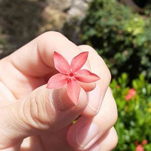 サンダンカ (コバサンダンカ)アカネ科 かなり密に咲いてます(о´∀`о) 今、30℃の気温 太陽照り付けてるし、諸々お洗濯頑張るか💪 暑いよー🥵 今日も健やかな1日になりますように!