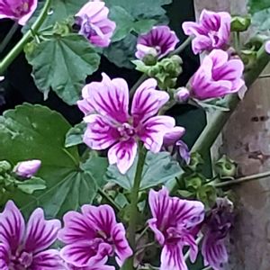 タチアオイを小さくした感じ。 薄紅アオイに似てます。 別名 モルチアナ、コモンマロウ アオイ科 花言葉「古風な美人」 水色のハーブティを楽しめる。