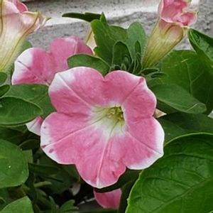 かわいいのが咲いてました* 「ももいろハート」とタグ付き。いろいろ改良されているのですね。 SUNTORY サフィニアアート ナス科