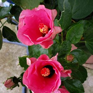 ハイビスカス 今朝は寒かったせいか、半開き。 いつまで咲いてくれるかな。