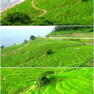 Senmaida in Wajima 🌱🏞️💫 世界農業遺産の輪島の千枚田、海まで落ちる何枚もの田が壮観❗🌱🏞️🌅😃 撮ったのはいささか古いが2012/7/6。ちょうど稲の分けつがMaxに達する頃、どの田も綺麗な緑色をしている。🌱🌿💚 感心するのは、耕作放棄地が一つもないこと❗ほとんど人力で耕作せざる得ない小さな田んぼ、普通であれば、耕作放棄地が出て当然。💦⛏️😥 千枚田オーナー・トラスト制度があり、多くのボランティアが年間2万円でマイ田んぼを1枚持つことで維持されているらしい。こうした制度がない限り、この様な小さな田んぼは維持されない。ご苦労さんです。👍⛏️👻 何時までもこうした景観を保って欲しいものです。👍👍😃😃👻👻 フォルダを見ていたら、綺麗な写真が出て来た。2012/7/6撮影。 👍👍🌱🌱🌿🌿📸📸😍😍👻👻