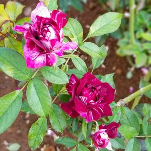 🌹パープルタイガー 黒星病になりやすく、 無農薬ではなかなか難しい バラですが、 なんとか咲きました。 たったひとつだけですが。 やはり、嬉しいものです😄