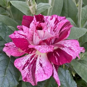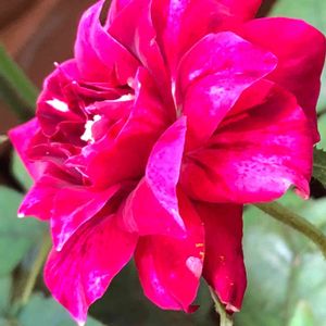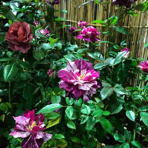 春先にプロスペリティと抱き合わせの1000円で買ったパープルタイガーが咲いてきました。 椿で知った言葉「吹っかけ絞り」的な模様が出ています。 シュートもバンバンで期待が持てます💕 別名バルセロナ92