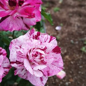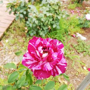お迎えしたばかりの薔薇さん🌹 開いて来ましたよー⭐️ またまた派手顔さんですねー♫