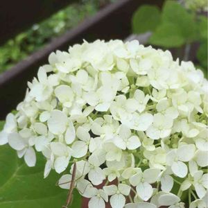 咲き始めたアナベルにカマキリの赤ちゃんがいました😊 雨が降って来たので早く葉っぱの下に隠れて‼️
