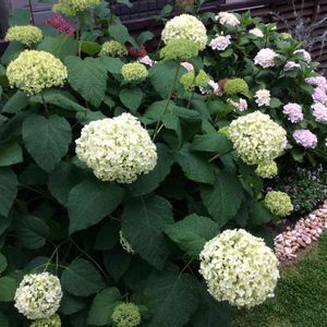 やったぁ~🐌 ピンクアナベルちゃんも咲きました|ω・)و ̑̑༉💛 おやすみなさい★🌙