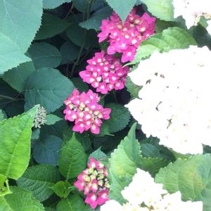 こんにちは〜🎵 アナベルとマジカルの狭間で ひっそりと咲いている 濃い鮮やかピンクの紫陽花💓 やっぱりアルカリ性の土壌なんだな〜💦 苦土石灰は入れないようにしてたんだけど…😅💦
