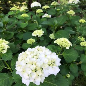 こんにちは〜🎵 ダルマノリウツギ(ピラミッド紫陽花)も咲き始めました💚🎶 そんなに大きくならず 内心ホッとしていますε-(´∀`; )✨ ガクアジサイのように周りのガクが開いて その後あまり変化なしの大人しめの子です(〃ω〃)💕