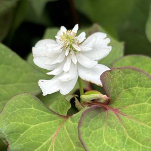 『ドクダミの花🤍🍃』 昨日我が家での 大発見👀🔍 八重咲きドクダミさん🤍🍃 みーつけた かくれんぼが上手でした👏✨✨ ドクダミ科 ドクダミ属