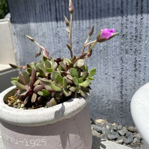 こんばんは🌙😃❗ 今日は一日中お庭に居ました😅 最近、暑くなり下葉や株の中が蒸れ枯れて汚かったのを掃除してなかったのでずっとチマチマ作業をしてました😌 ① アナカンプロセス桜吹雪 育て始めて数年初めてお花が見れそうです😆 ②③ 姫秀麗も花芽がついてます😁 ④ エケベリア七福神は花芽が上がり1つだけ咲いてます👌 今住んでるところは多肉植物には環境が良いみたいで前は徒長しまくり、前のアパートは陽射しが強すぎて葉焼けや雨の後に溶けて無くなっていたのですが、ここに越してきて始めて咲いたり徒長無しで育ってくれたりで良いことだらけです😁