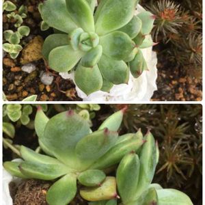 朝は雨が降っていましたが、晴れてきました🌞 カット苗のパックに入っていた名前のわからない子たち。 適当に集めて土の上に置いておいたら、しっかりと根付いてくれた様子。とても元気そうでうれしいです😊 ピンクプリティは外側の葉っぱが何枚かシワシワカラカラになってしまったけど、全体的に少し大きくなった?! ただ開いただけなのかな…!? いろいろ寄せ集めの鉢は、一番大きかった子がぶよぶよ→バラバラになってしまいました😭