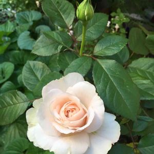 連日の猛暑☀️ 水やりが朝晩で大変ですが バラさんたちは元気です 本日開花は、ピーチドリフトさんです! 小ぶりなお花ですが、つぼみもたくさん 可愛いですよ🌸