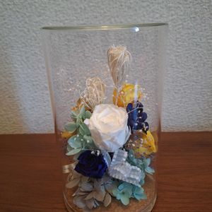 💠今月のお稽古💠 初のプリザーブドフラワーでした😊 猛暑続きでお花がもたないから~と先生がプリザの花材を用意してくれました~☺ 細かい作業で無口になりながら、2時間かけて完成❕ どこから見ても可愛くなるようにと、最後は先生に色々と手伝ってもらいました😅