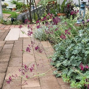 ペラルゴニウム 〜シドイデス〜 去年切り戻しをちゃんとしなかったから伸び伸びになっちゃって💦 ダメもとで✂️⸒⸒したら復活〰 ദ്ദി˶ー̀֊ー́ )ヨカッタ 今年も通路を占領して暴れ咲きしてます(,,> <,,)♡ シルバーリーフとシックな色の小花がとってもカッコイイお花さんです♡♡