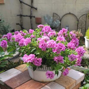 ①サフィニア フリル お迎えした時に短くカットしてから約1ヶ月が経ち、大きく成長しました🩷 フリフリのお花がとっても可愛い (៸៸>⩊<៸៸) ②シクラメン ジックス なぜか お花が咲きました ^^; 開花期にもちゃんと咲いてくれるのかな…(👀❓💦
