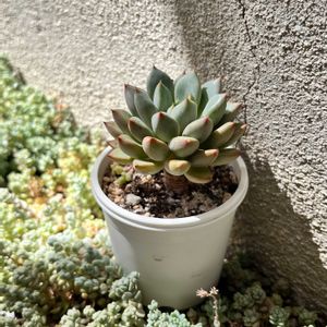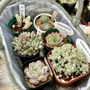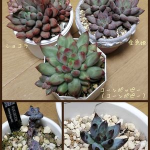 お久しぶりの投稿になってしまいました💦 先月になりますが💦 3月8日(土)☁️☔️❄️ 雪が散らつく寒い日でしたが ポートさんのリアルイベに 娘と行って来ました❗️ 11時頃に到着したので、ゆっくり多肉さんを買う事が出来ました☺️ YouTubeでオススメされた多肉さんを探し購入し、リメ鉢にサインしてもらいました! ①3月8日帰宅して すぐに並べて撮った写真です ②今週はお父さんにお休みをもらい‥ 3月は実家の工事、お父さんがコロナに感染し入院と😱 ほぼ実家、病院とバタバタだったので💦 仕事がお休みの日に植替え等楽しみました❗️ 頼まれていた娘の購入した多肉を 娘がメルカリで購入したリメ鉢に 霜椿とショコラとチワワエンシスルビーフラッシュ ポートさんのリメ鉢に ラパスリラ 私が購入したポートさんのリメ鉢にはサンタバーバラ コブエケ? セコビアは鉢上げしました ③近所のタニ友さんのシー先生 に頂いたピンクの可愛い切り込みの鉢 やっと植えました💦 雨晒しでも元気に育ってくれる普及種! 元気な多肉さんを集めました💪 ちょっとイメージが違ってしまいましたが💦 みんな可愛い多肉さんです☺️ カット苗なので根が出るまでドキドキです 風が強く寒暖差が激しい4月 皆様お身体に気をつけてお過ごしください🍀