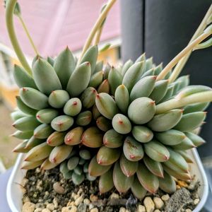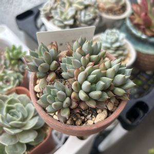 こんにちは😊 めちゃくちゃ、めちゃくちゃご無沙汰しております😅 (一応この前みどりのまとめは投稿しました🤣) 6月の投稿から2ヶ月以上… 酷暑にやられながらなんとか日々過ごしております💦 多肉たちは… いやもう、ホントにヤバいですね💦 我が家は去年まで、夏は遮光せず 冬も保護もほとんどせずに管理して来ました😊 でも… 今年は無理〜😂 生産者さんとか昔から育てられてる方でさえ、沢山の多肉を★にされてるみたいだから仕方ないよね〜と思いつつ😅 私もまぁまぁ長年育ててきて、ここまで酷かったのは初めてです(꒪⌓꒪) 日差しが強かったり お水が足らなかったり 足らないと思ってあげるとジュレたり… 毎年、一鉢一鉢お水をあげてましたが、人間も無理😂 って事で今年は途中からシャワー🚿で水やりに変更しました! そこから意外と多肉たちは持ち直した感もあります〜😆 長々と書きましたが… そんな中でも元気で綺麗な多肉たち♥️ ①cozさん苗 形も色も綺麗😍 もちろん、色は夏色に変わりましたがそれでも綺麗です♡ ②お友達の実生 『ロビン×トバレンシス』 一番の紅葉からはかなり色あせちゃいましたが、やっぱり素敵✨✨✨ ③KABUさんの『だるま姫秀麗×スプリングワンダー』 色もまだピンク💕 そろそろチョンパ✂️したり葉挿ししたりして増やして行きたいなぁ… ④こちらもお友達に頂いた ミックスベリア009『夕波』 めちゃくちゃ元気いっぱいです♥️ 他にも頂いた子がいるのですが 他の夕波たちも元気です😊 ⑤多肉植物食堂さんからの 『オレンジモンロー』 モンロー系は強いですよね💪 そしてこの子達、どちらも真ん中から花芽?子株?みたいに、それも双頭?になってます😅 今後どうなっていくのか… まだまだ暑い日が続きそうですね💦 植え替えも全然進まない… とりあえず★になってる子を処分したりしてるくらい… 今年は秋は来るのでしょうか😅 みなさまもお身体気をつけて… 長い残暑乗り切りたいですね🤣