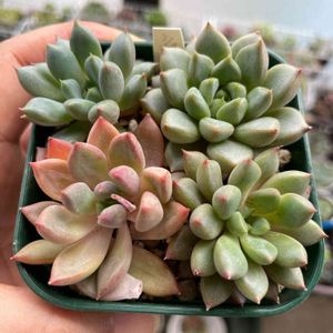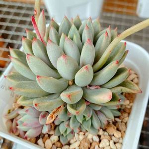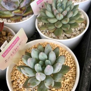 こんにちわ🙋 苗紹介します🎵 先週のイベントの戦利品🎵 ↖レボリューションさん🌱 先代苗はホームセンター出身のためきれいに整え中です💦 ♥に見えるのたまらなく可愛いですよね🎵 GS当初にpicされてた方がいて狙っていた子です✨ ⬅アマビレさん🌱 大好きな淡い色に子株ちゃんつき、狩っちゃいますよねぇ🎵 ➡七福美尼さん🌱 おばちゃんとこで狩った群生の子も可愛いですがお一人様も可愛いですよね🎵 この子も子沢山になるでしょうか✨ ワクワクします🎵 ↙ショコラさん🌱 名前狩り✨ バレンタインにpicするの目標です✨ ↘ワインシャンペンさん🌱 シャンペンファミリー完結したはずが出会ってしまいました😂 シャンペンシリーズどんだけ種類がいるのでしょうか💦 狩りも楽しいですが、それぞれの想いを書くのも楽しい一時です🎵 もちろんごっつご機嫌🎵 次に続きます🎵