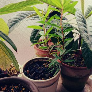 実生ザクロ🌱 どうなんだろ?芽🌱が3分割しているんだけど…どう?なんかヒョロイだよ…一本にした方がいいかなぁ✂️🤔