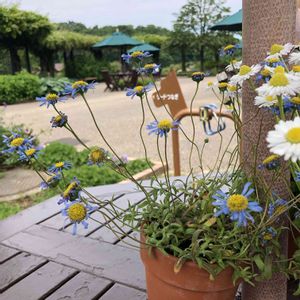 バラ園を彩る脇役のお花たち 💐カフェテーブルの小花 💐巨大なハンギング 💐ベンチの背景に白バラ