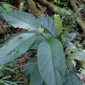 ヨウシュヤマゴボウみたいに実が垂れ下がりません。 「あっ火曜日」🔴 マルミノヤマゴボウ(丸実の山牛蒡) ヤマゴボウ科ヤマゴボウ属 関東地方以西〜四国、九州の山の木陰に分布する在来種です。 茎は太く高さ1m以上に達する。 有毒植物だからシカも食べません。 ヨウシュヤマゴボウを含むヤマゴボウやマルミノヤマゴボウには全て同様の毒があるそうで、 果実と根に有毒成分を多く含む。 厚生労働省の自然毒のリスクプロファイルによると食べた場合は「腹痛・ 嘔吐・下痢を起こし、ついで延髄に作用し、けいれんを起こして死亡する。 皮膚に対しても刺激作用がある。」とある。 更に調べてみると、厚生労働省のページには書かれていない!が、根と種子にはポークウィードマイトジェン(PWM: Pokeweed Mitogen)が多く含まれるらしく、同じく有毒なのでこれが原因だろうか。 ポークウィードマイトジェンはリンパ球幼若化活性・赤血球凝集活性などがある植物レクチンとのこと。 つまり食べたら血が固まってしまう。 だが、実際にアメリカでソウルフードとして葉茎が食べられていた記録がある。 3回茹でこぼす。 この植物は山菜などがなくなってしまう真夏でも秋口でも常に非常に柔らかい葉茎がありながら誰も採らないという大きな利点がある。 これは例え川の水などであっても茹でることさえ可能な状況であえあれば、食糧事情が悪い中において有用になるだろう。 海が遠ければヌルデの実を焼いて塩分をとればいい。 山で迷子になった時の為に、覚えておこう。