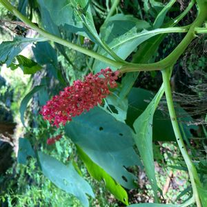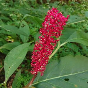 赤の花穂が遠くからでも目立っていました 1️⃣日陰 2️⃣🌞のよく当たる場所 地域によって絶滅危惧種 ヨウシュヤマゴボウはあちこちで大きさ株を見かけるが、これは株も花穂も少なくあまり見かけない。