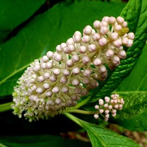 マルミノヤマゴボウ 丸実の山牛蒡 草丈1㍍程 お花の大きさ8㍉程 花期6月~9月 洋種山牛蒡のお花は 下垂れて咲きますが 此方は上を向いて咲きます。 分布は関東地方以西