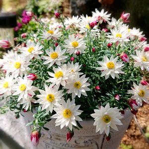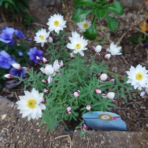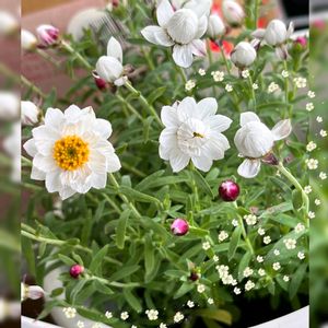 🏷金曜日の蕾たち 🏷純白マニア 🏷白い恋人達 🏷花咲く乙女たち♡ ハナカンザシ(花簪)💟 又は「ペーパーカスケード」💠 キク科ローダンテ属 「冬の妖精🧚♂」白いかさかさとした 可愛らしい花を見つけたので🎶 寄植えにしてみようかと✌️お連れしました🎵 花言葉💐『思いやり』 🏷頑張れ北陸♡ 🏷復興を祈る 🏷かおるんるんさんを忘れない!