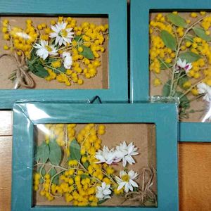 今日のお花~ミモザの日 <ミモザ アカシア> またまたミモザをいただいたのでフレームアレンジ セリア100均のフレーム、カラフルで可愛い💛 花季節過ぎても楽しめそう