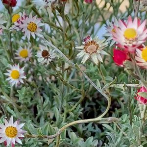 こんにちは 今日は昨日お買い物途中で買ったお花たち何安売りしていたので買ってしまいました 花かんざしかな?と思っていたらペーパーカスケードと言うお花 とても花かんざしに似ていますね 花かんざしの蕾は丸いですけどペーパーカスケードの蕾は尖り蕾です 上の左側と真ん中が花かんざし スカシユリも顔を出して来てくれています ノーマルのチューリップも少し植えました