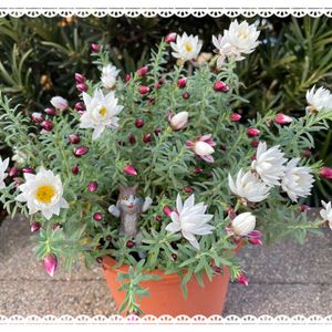 花かんざしが咲き始めました😊 つぼみもたくさん付いているので 満開になる日が楽しみです💖 花言葉は 思いやり 温順 明るい性格 すみません💦 花かんざしだと思っていたこの子 ペーパーカスケードでした。 花かんざしとペーパーカスケードの違いは 花弁のかたち。 花言葉は 思いやり 小さな思い出 同情