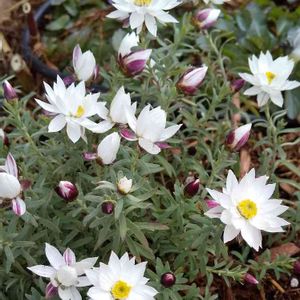 おはようございます。 ケーキ屋さんの庭で咲いていました。 ハナカンザシですが、花びらの先がとがっています。 調べてみるとペーパーカスケードでした。