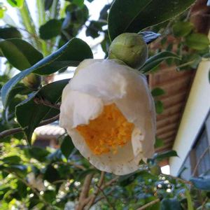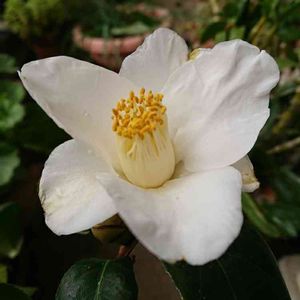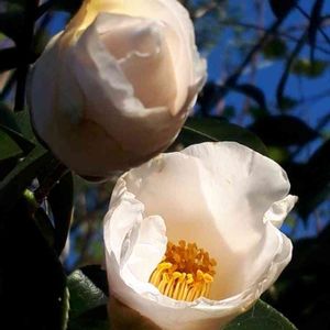 白い久留米つばきが咲きました❗😊 「清香」といいます~‼️ 茶の湯の席に似合いそうですよね❗👍 清楚で素敵~‼️❤️😍