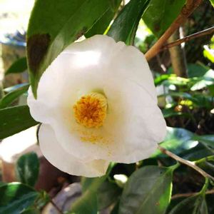 真っ白なツバキ。 開花時期12〜4月 原産地 日本 中国 東南アジア