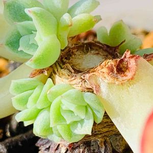 胴切りシリーズ✨ 月影の宵です😊 少し月影の宵について、調べたのですが… どうやら、いろいろな種類の月影の宵があるよう😅 爽やかな緑色の子株がたくさん出ました。 どの月影の宵でも、かわいらしい多肉植物です💕