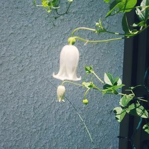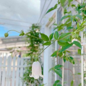 クレマチス カイウが咲きました✨もう少し開きます。 鉢よりだいぶ遠くに行って咲きました~🌠 白いランプみたいで可愛いです💓