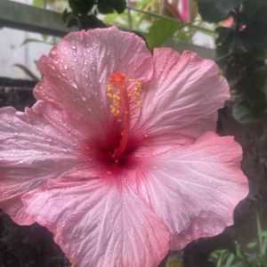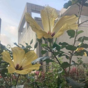 夕立の後‼️ 濡れた花びらも風情があります❗️ ハイビスカス レモンイエロー (花径:15.5cm)