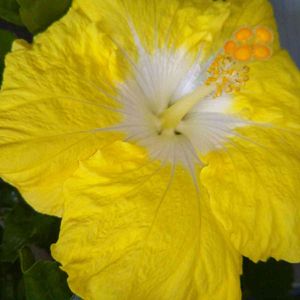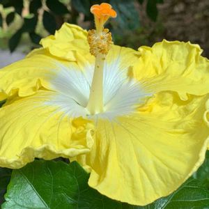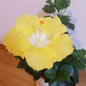 爽やか‼️ レモンイエローの花弁に白い中心部が爽やかな色合いです❗️ ハイビスカス レモンイエロー (花径:15.5cm)