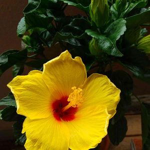 ハイビスカス・レモンイエロー 先週の日曜日 ¥780→¥270 に値下げされていて😳 ついお迎えしてしまいました!! まだまだつぼみが有り 咲きそうです🌺