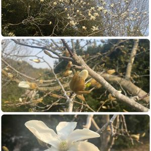 駐車場から職場までは山際を歩くので、そこでのお楽しみ♡ ハクモクレン!?ですね。 ぷっくりの蕾もかわいいです🌿✨ 2025.3.35📸