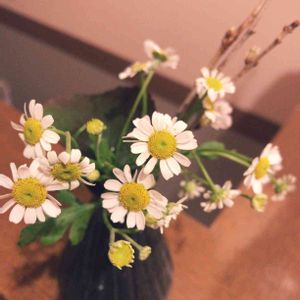 彼岸桜のお供にカモミール 実は菜の花とナズナと一緒にブーケになっていたんだけど、一輪挿しに入らなかったんだよね← でもなかなか可愛いのでは
