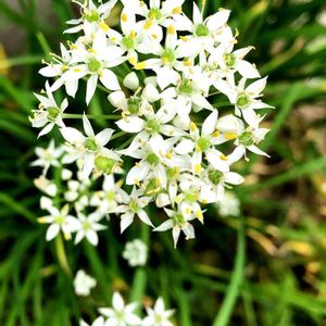 ニラのお花が咲いてました😊 こぼれ種でナント✨玄関先の塀の角に‼️ さすがにこの場所のは食することは出来ません😂