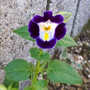 こぼれ種 今年植えてたトレニアかな? 去年も同じ色があったけど… 土じゃない所で花を咲かしてます🍀